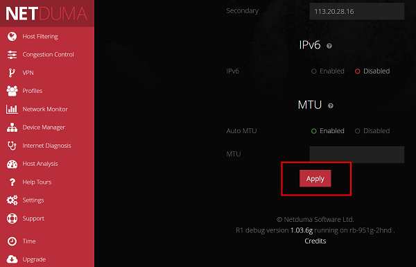 Setting up your Netduma R1 router to use My Private Network’s MyTelly service should take just a few minutes by following the steps below. Please note that your router needs to be connected to the Internet and your computer is able to browse the web before moving on with the instructions below. You do not need to be connected to our VPN for MyTelly to work, kindly disconnect from the VPN if you have it turned on.